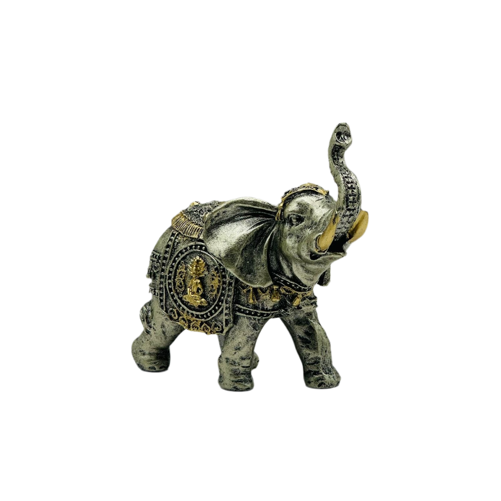 El elefante, con la trompa levantada, es considerado un símbolo de prosperidad, protección y buena fortuna, ideal para atraer energía positiva a tu hogar o espacio de trabajo.